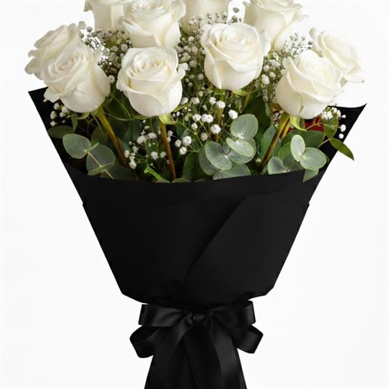 12 white roses classic wrapping