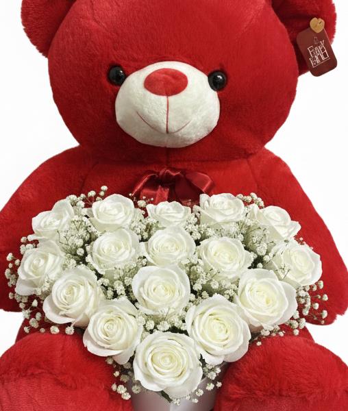 90 cm red teddy bear fairy land collection with heart shape whit roses box