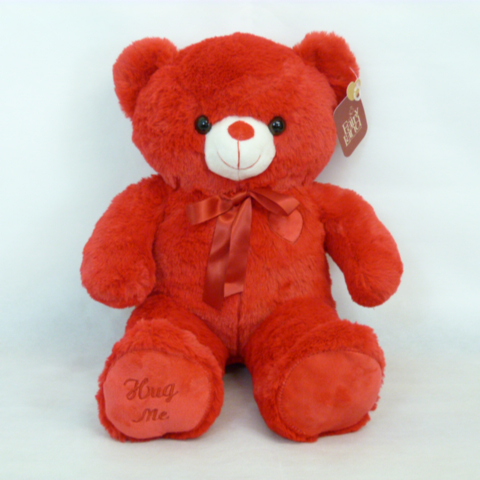 red teddy bear hug me board on the feet heart badge and bow from fairy land collection 50 cm size