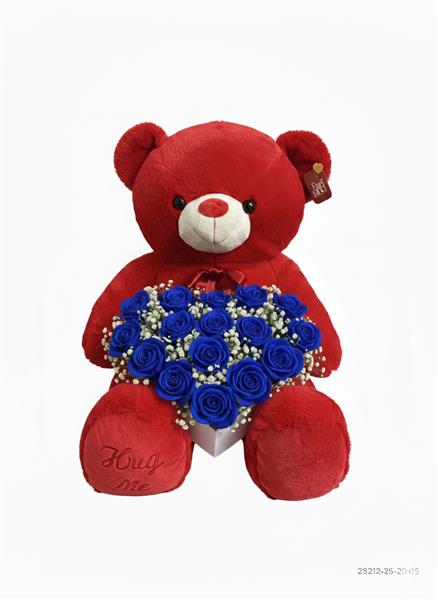 90 cm teddy bear with heart shape flower box royal blue
